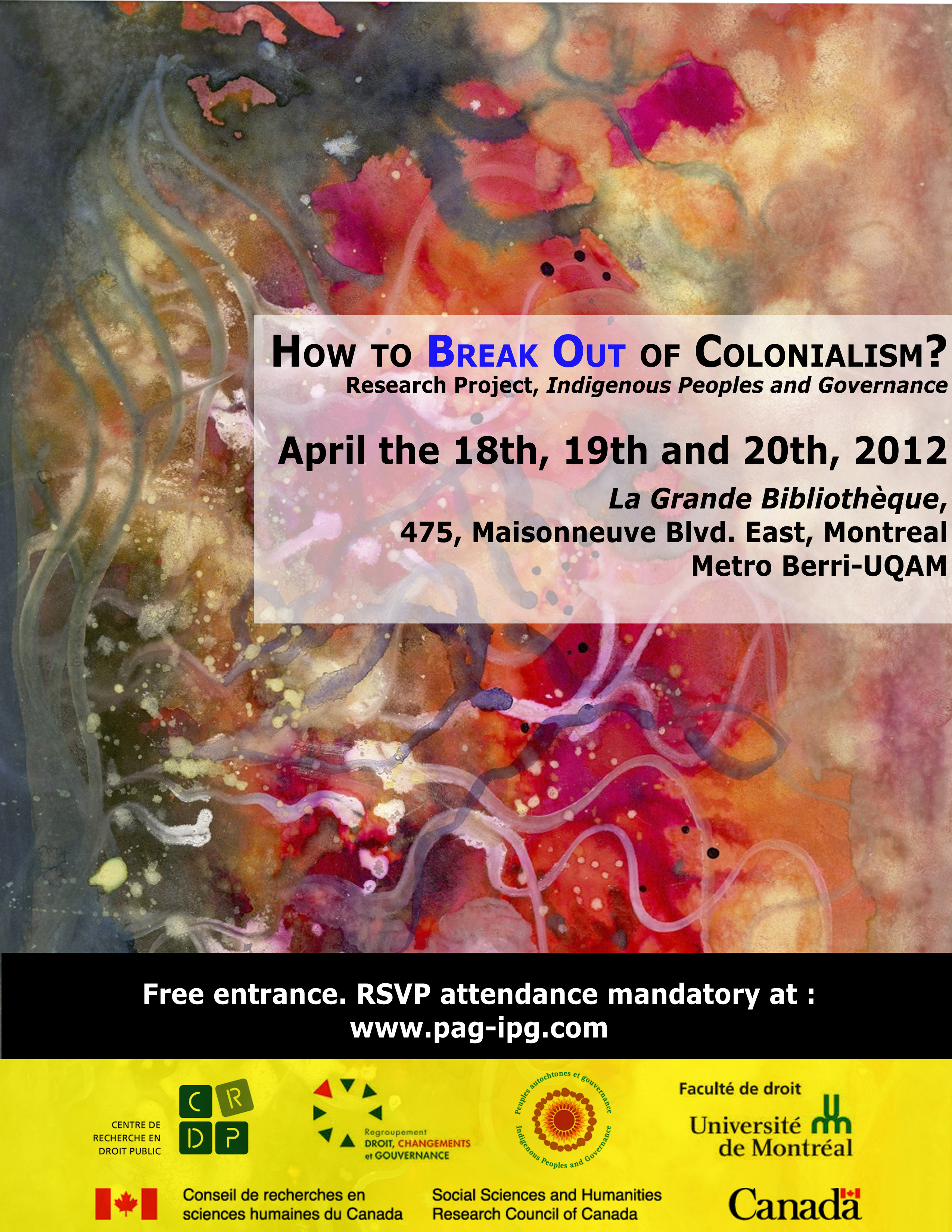 How to Break out of Colonialism? April 17, 18, 19 et 20 2012 @ Grande Bibliothèque de Montréal.
